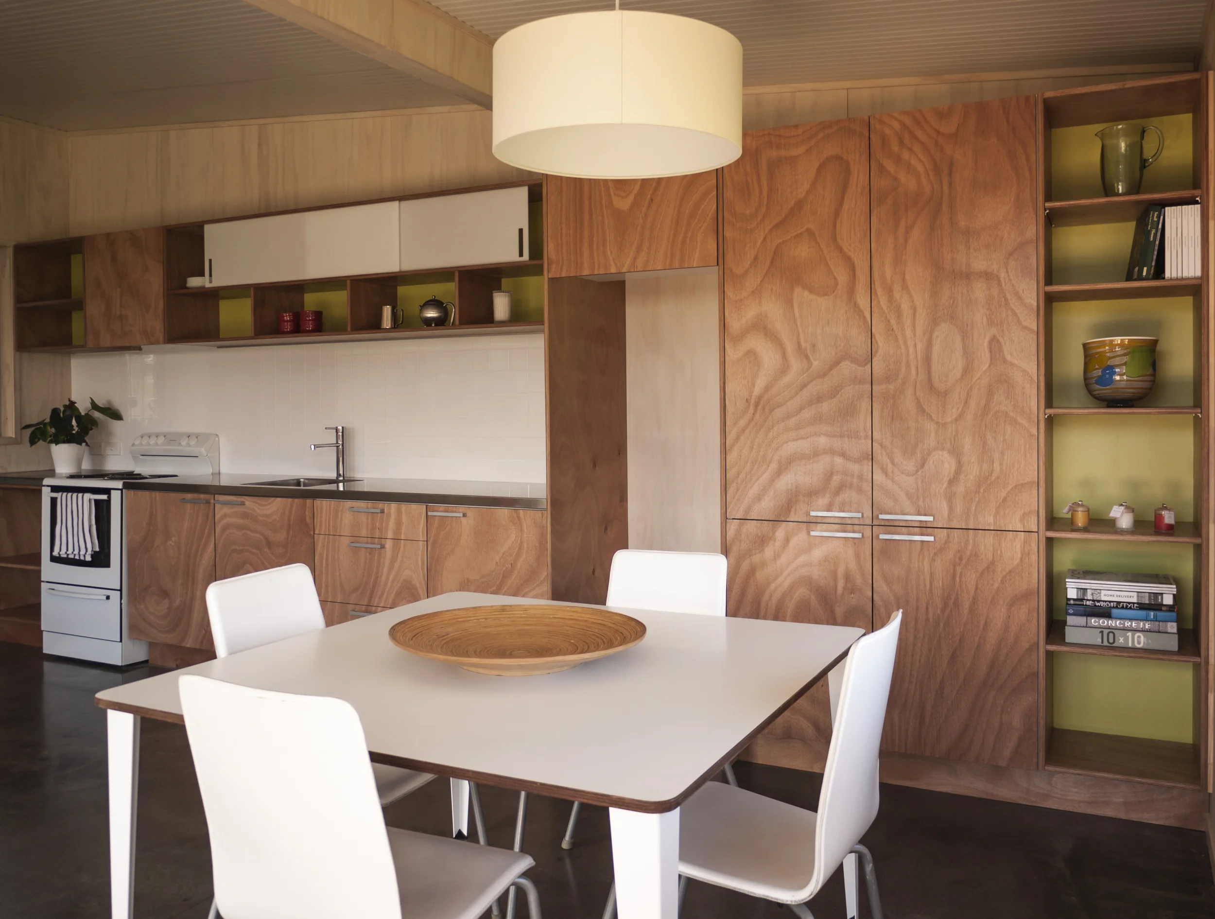 Combining on-site works - concrete slab foundation, for accessibility and thermal mass, with prefabricated service module and panel components. This limits the timeline and disturbance on site.Built house – in use